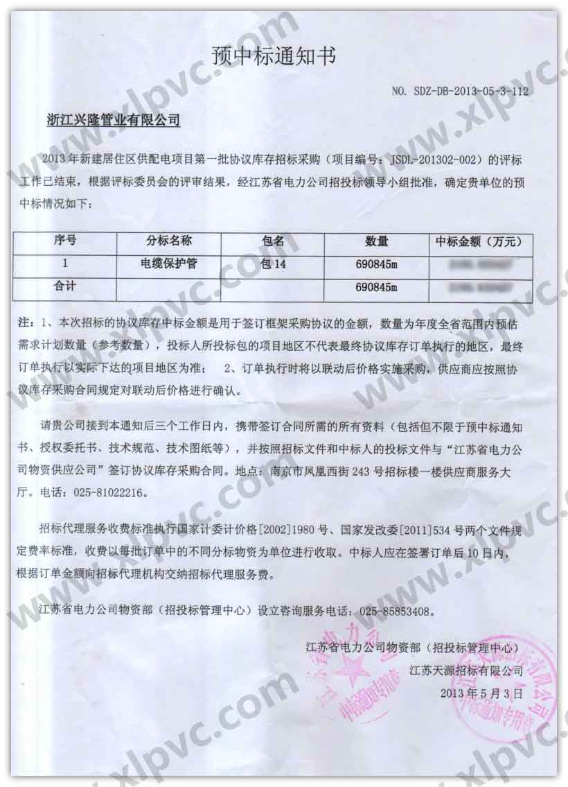 中標通知書